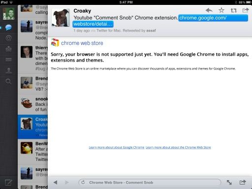 Viewing the Chrome Web Store on an iPad.