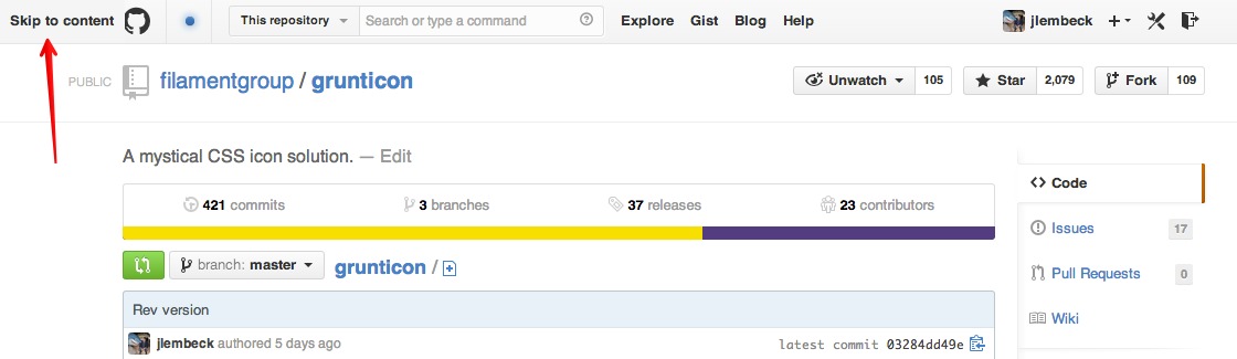 : Github "Skip To Content" link that shows on :focus is so so smart -