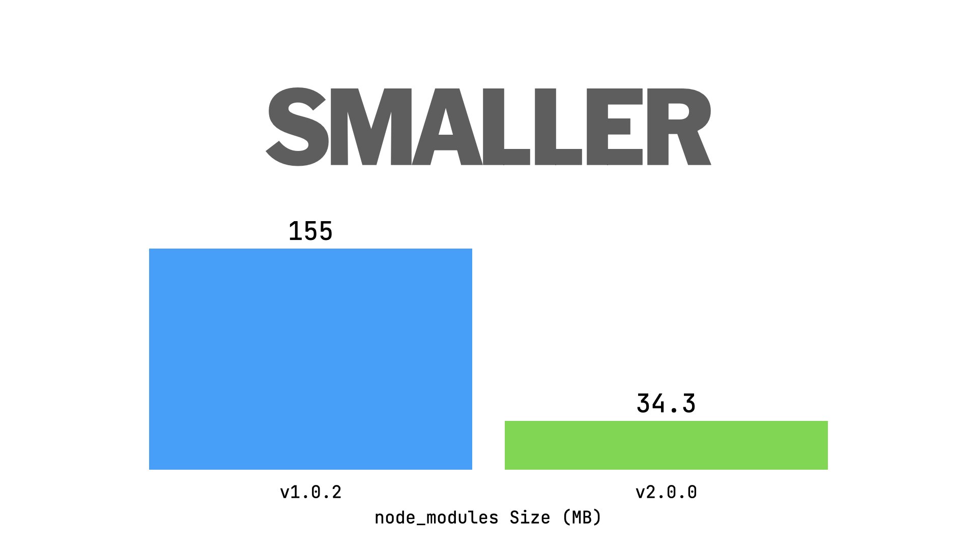 So instead of 155 megabytes showing up inside of your projects node folderwhen you install 11ty, now we're at 34 megabyte, which I think is great.And just to compare to some existing alternative frameworks inthis space, Next.js is about 150.